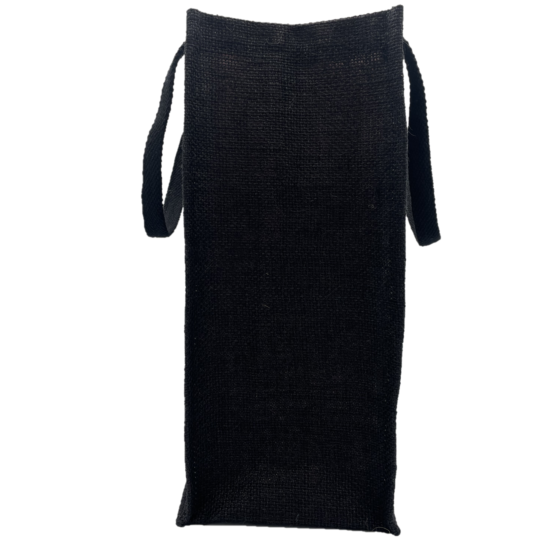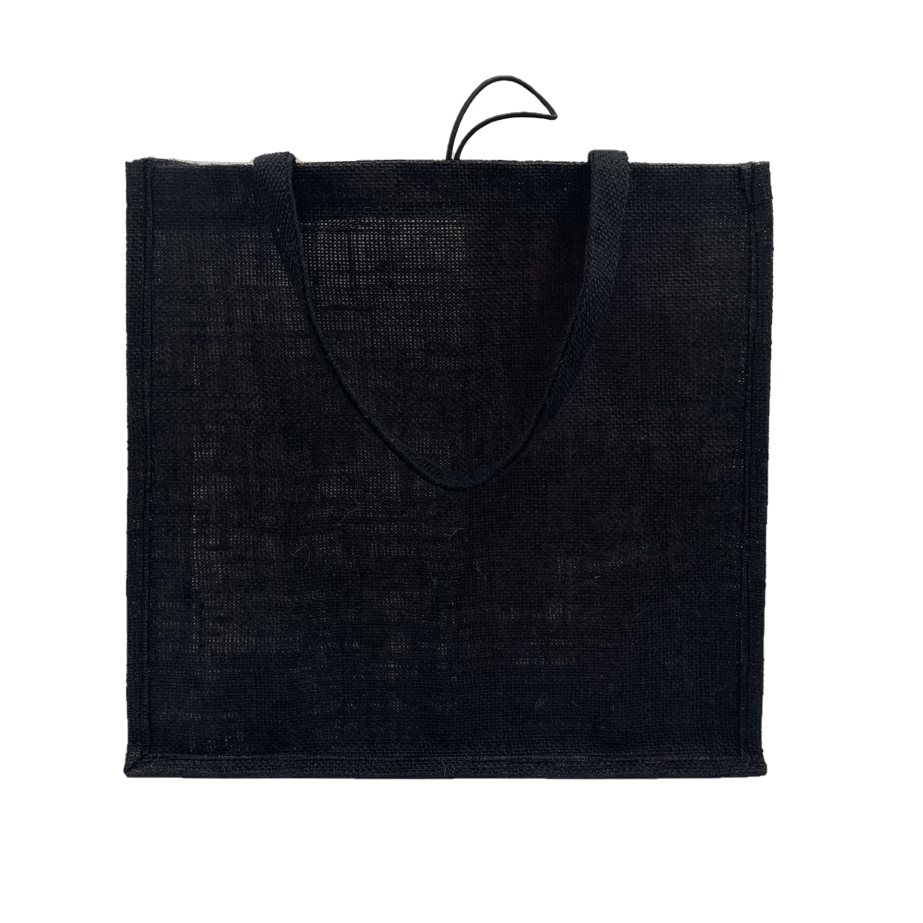 Stylish and eco-friendly, this black jute tote bag is perfect for everyday use. Designed with sturdy handles and a secure button closure, it's great for shopping, work, or casual outings. Made from durable, sustainable jute fabric, this reusable bag combines functionality with a sleek, minimalist look.