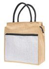 This eco-friendly jute tote bag is a perfect blend of sustainability and style. Featuring a natural beige jute body with a contrasting white front pocket secured by a zipper, it offers both functionality and elegance. The black woven handles provide a sturdy grip, making it ideal for shopping, daily errands, or travel. With a spacious interior and durable construction, this bag is a reliable and fashionable companion for any occasion.