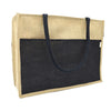 Carry your essentials in style with this two-tone jute tote bag, featuring a natural beige and black color combination. Made from premium-quality jute, this bag is eco-friendly, durable, and reusable. The long, sturdy handles ensure a comfortable carry, making it perfect for shopping, work, or everyday use.